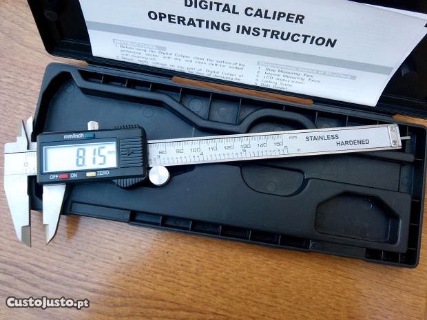 Características: Paquímetro digital Faixa de medição: 0-150 mm / 0-6 polegadas Repetibilidade: 0.01mm / 0,0005 Resolução: 0.01mm / 0,0005 Precisão: 0,02 mm / 0,001 pol Alimentação: 1 x 1.5V SR44 Pilha (incluída) Tamanho: 240 x 80 x 12mm Dimensões interna, externa e altura pode ser facilmente medido com precisão Base de dados de medição da função: interior, profundidade, fora e medição do passo Com display de fácil leitura LCD de grandes dimensões Sistema linear de medição capacitiva Com um pequeno parafuso de bloqueio, que bloqueia as maxilas no local Com os dados de exploração, visualização rápido, rápido rastreamento valor máximo e mínimo durante as medições de conversão, entre a medição relativa e absoluta e configuração de zona de tolerância *Pilha 1.5V SR44 não incluida Conteúdo: 1x paquímetro digital 1x Manual Portes gratis, há cobrança mais 3 euros
