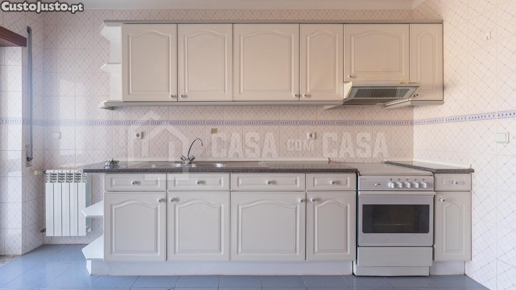 A cozinha encontra-se mobilada e equipada e tem marquise com muita luminosidade.