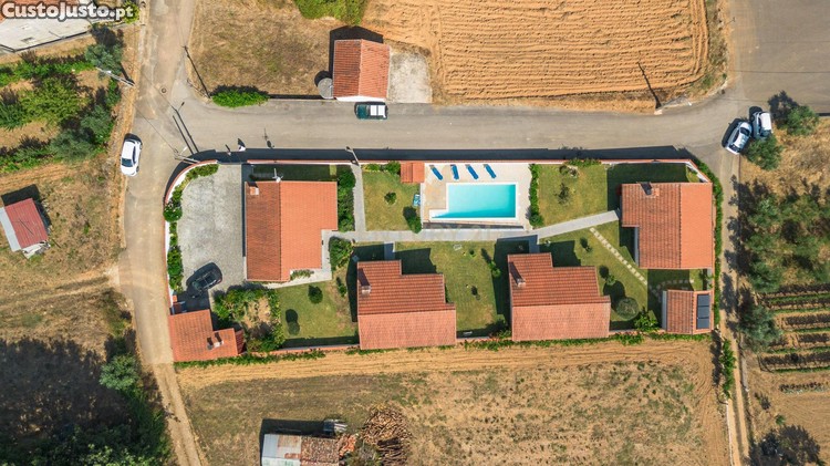 Encantadora quintinha murada com 1.300m² de terreno, localizada em um ambiente tranquilo e privado, composta por 4 casas individuais T2, perfeitas para residência, turismo rural ou investimento.