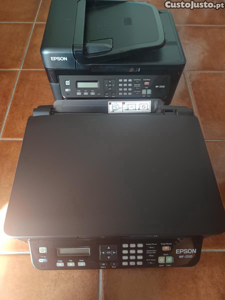 Dois multifunções EPSON modelos WF-2530 e WF-2510, diferem apenas por um ter alimentador automático.