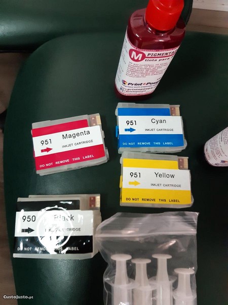 Tinteiros recarregáveis, nunca usados, comprei entretanto avariou a impressora, ofereço os originais que estão na impressora ainda com bastante tinta.