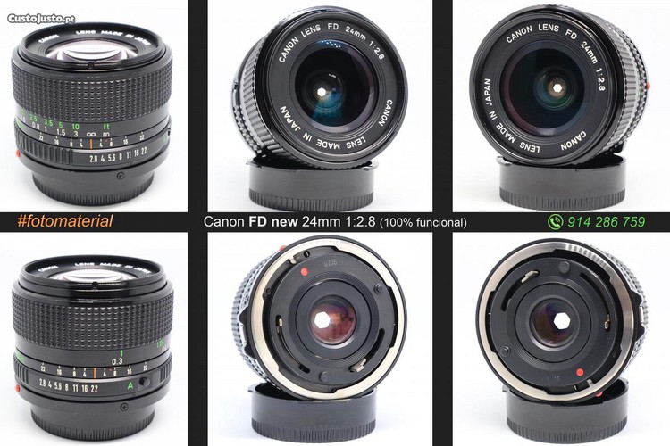 Disponíveis objectivas prime / fixas Canon FD, totalmente funcionais e limpas (valores abaixo - também disponíveis objectivas zoom e de encaixe M42, Nikon F, Olympus OM, C/Y, Konica, Minolta e Pentax K, se interessar contacte p.f.):