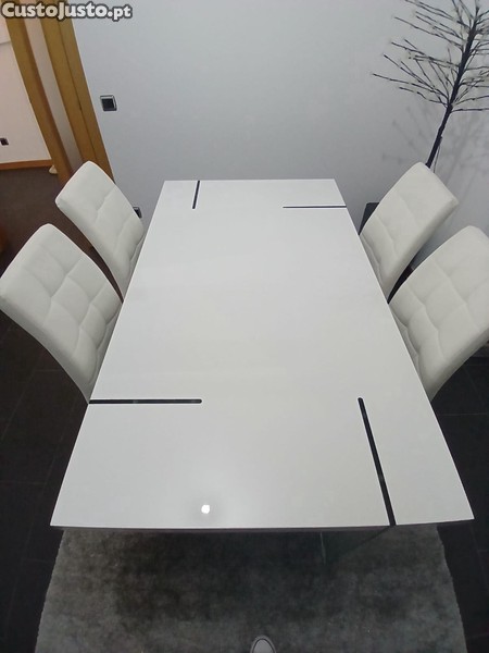 Conjunto: Mesa de sala de estar/jantar, com 4 cadeiras, tudo como novo