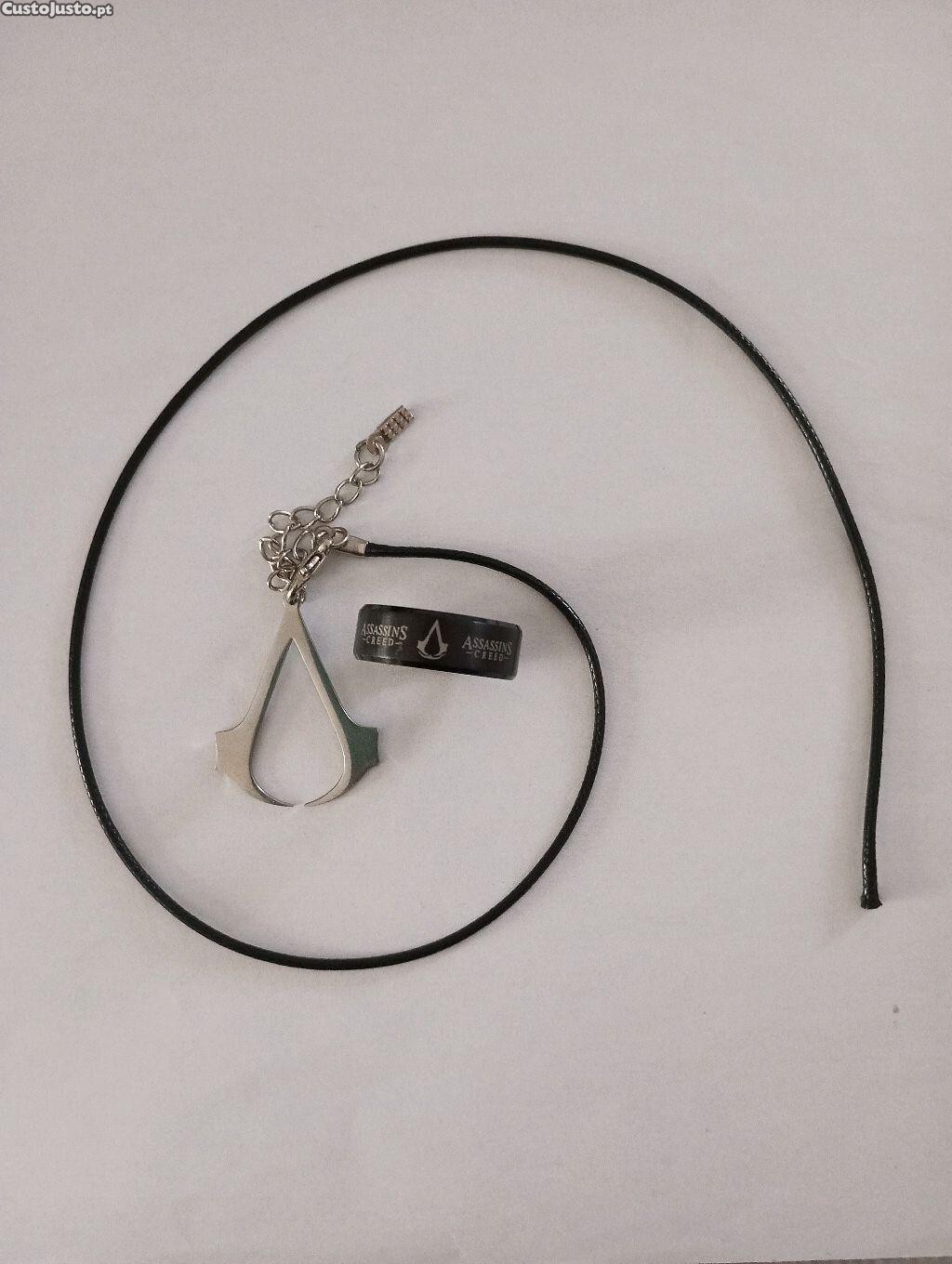 Conjunto exclusivo inspirado na famosa saga Assassins Creed: um fio com pendente detalhado e um anel elegante, ideais para fãs da franquia e colecionadores.