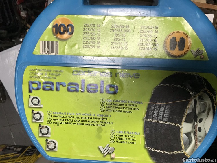 Correntes para rodas de tração de automóveis compatíveis com as dimensões da segunda nada foto.