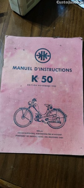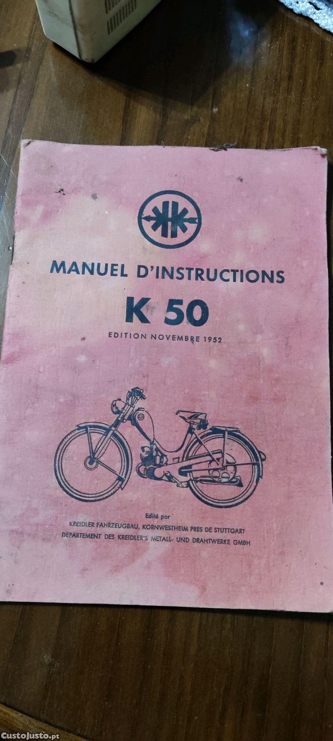 Manual de instruções de moto a pedais K50 em francês e um volante também da mesma mota para restaurar...